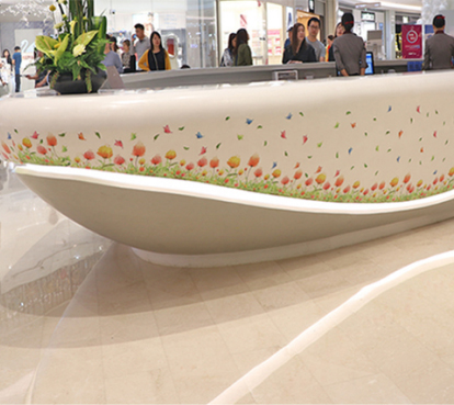 产品涵盖人造石台面、吧台、大型人造石公共装修、装饰工程、人造石卫浴、人造石家具、队业展柜等各类体系。